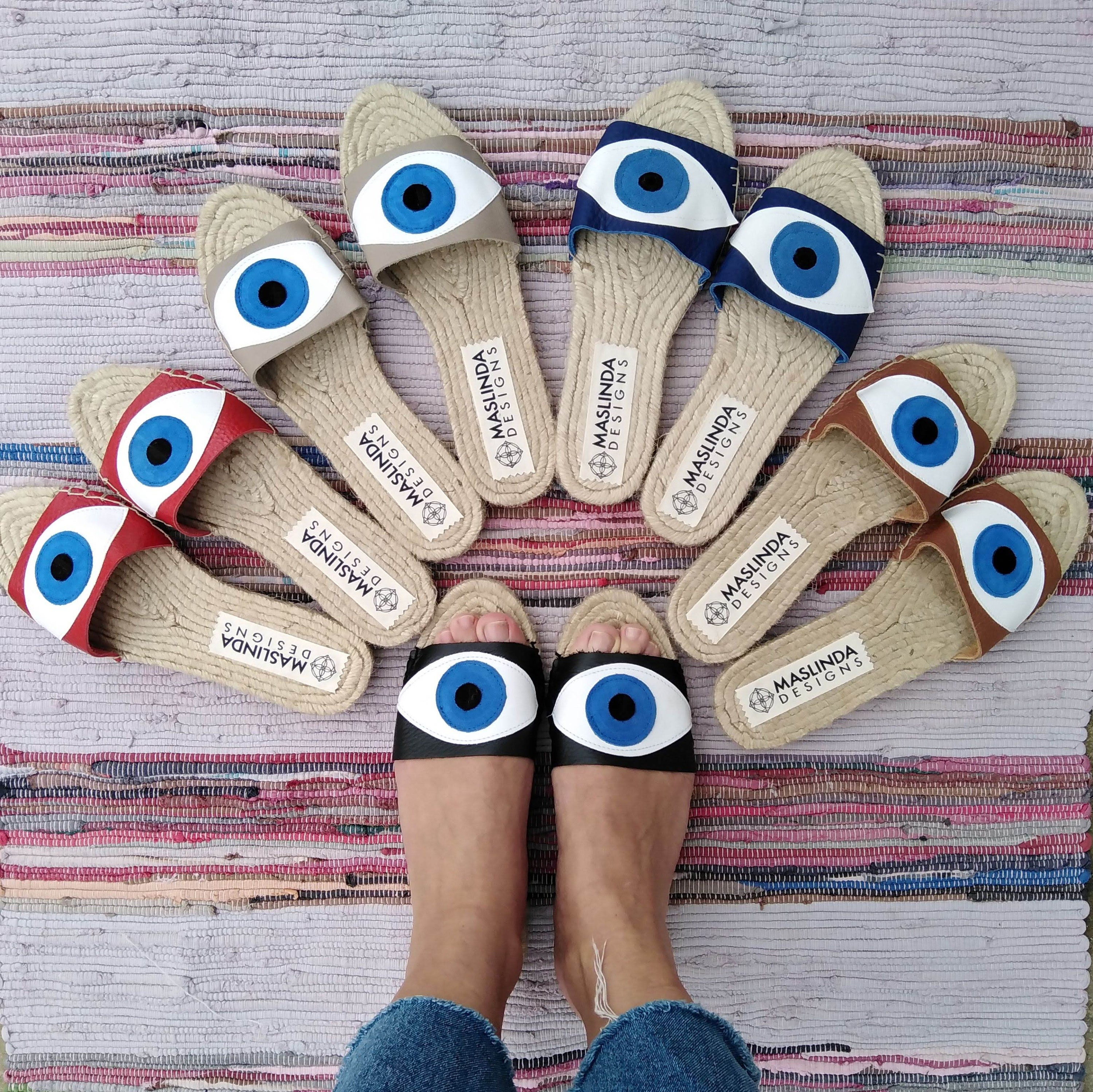 Sandalias De Mal De Ojo Sandalias Toboganes De Cuero Zapatos Etsy Espana